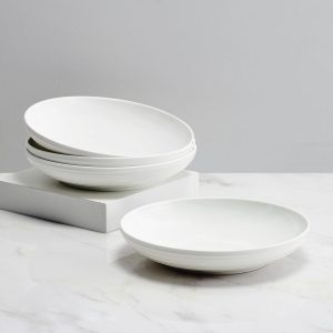 This Alyssa Pasta Bowl features an embossed swirl design that adds a touch of flair to any table.