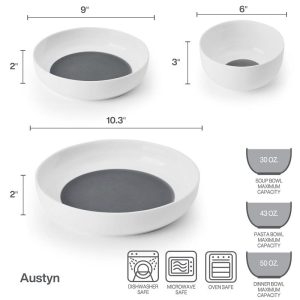 Be the first to review “Austyn 9 Piece Dinnerware Bowl Set. Service for 3” Cancel reply