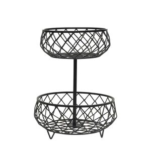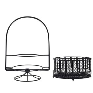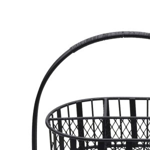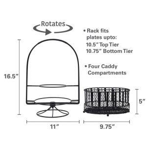 This Gourmet Basics Band and Stripe Swivel Hostess Buffet Storage Caddy features a contemporary black finish that complements most decors. The wire frame design with thick band accents provides clear visibility of the contents. and the caddy features compartments to keep utensils. plates. and napkins grouped together. organized. and separated. Caddy has a convenient handle on top for carrying.