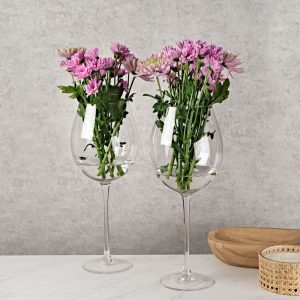 Make a bold and dramatic statement with this Set of 2 Lavish Oversized Wine Glasses. Beautifully crafted with a timeless design and silhouette. these oversized wine glasses will be the life of any party and also command attention as decorative pieces for your mantel. sideboard. home bar. dining room table. or kitchen table.