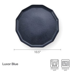 This Luxor Blue Dinner Plate Set features contemporary shapes and eye-catching speckle effects. on a reactive glaze finish. Due to the nature and hand-crafted qualities of reactive glaze. no two pieces are exactly alike and will exhibit unique variations in color and pattern. Product may slightly differ from image shown.