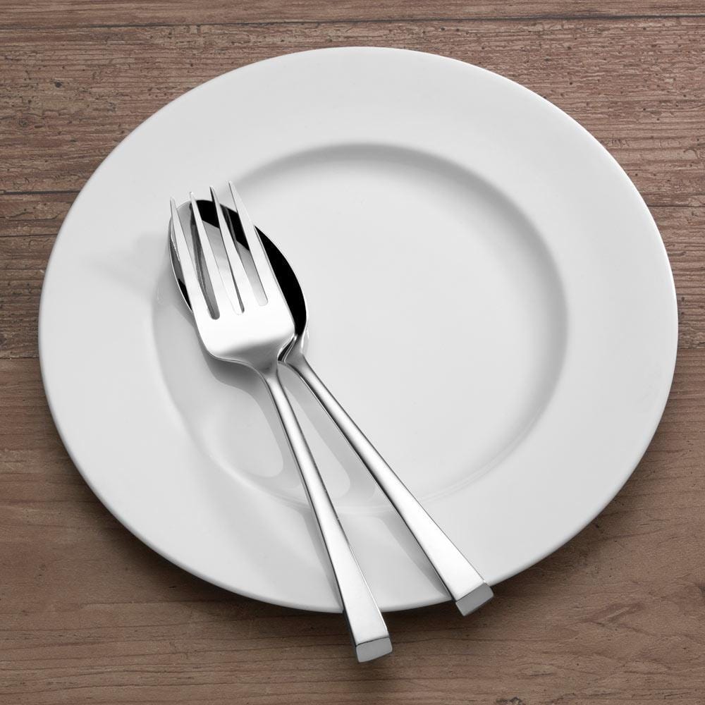 Mikasa Rockford flatware boasts an ultra-modern design in a gently tapered block shape handle. Crafted of superior quality 18/0 stainless steel this set will stand up to the rigors of everyday use. 42 piece set. service for eight. includes (8) each: dinner fork. salad fork. dinner knife. dinner spoon and teaspoon. plus a tablespoon and a cold meat fork. Dishwasher safe.