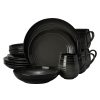 Swirl Black dinnerware combines a coupe shape. shiny finish with a cobalt ombre effect for a truly modern look. The cobalt blue color will add a bold touch. and a striking statement with its versatile style. Crafted of ironstone with a pin-firing technique which allows the entire bottom of the plate to be glazed. including the base. This process significantly reduces water absorption and increases chip resistance. 16 piece dinnerware set. service for 4. includes (4) each: 11-1/4 dinner plate. 9-1/4 inch salad plate. 8-1/2 inch (40 ounce) soup cereal bowl and 20 ounce mug. Microwave and dishwasher safe.