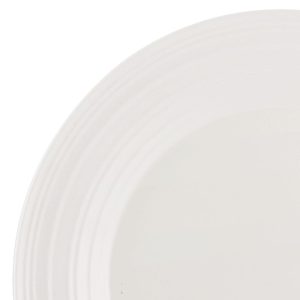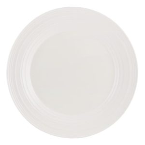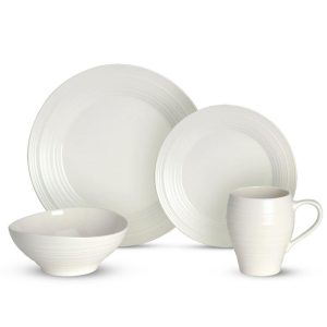 Swirl White’s rich. double finish – smooth and glossy on the inside. ribbed and matte on the outside – sets a striking and original tablescape. The soft rib on the outside of the collection offers a hand made look. Crafted of ironstone with a pin-firing technique which allows the entire bottom of the plate to be glazed. including the base. This process significantly reduces water absorption and increases chip resistance. 16 piece dinnerware set. service for four. includes (4) each: 11-1/4 inch dinner plate. 8-1/2 inch salad plate. 6-3/4 inch (24 ounce) cereal bowl and 18 ounce mug. Microwave and dishwasher safe.