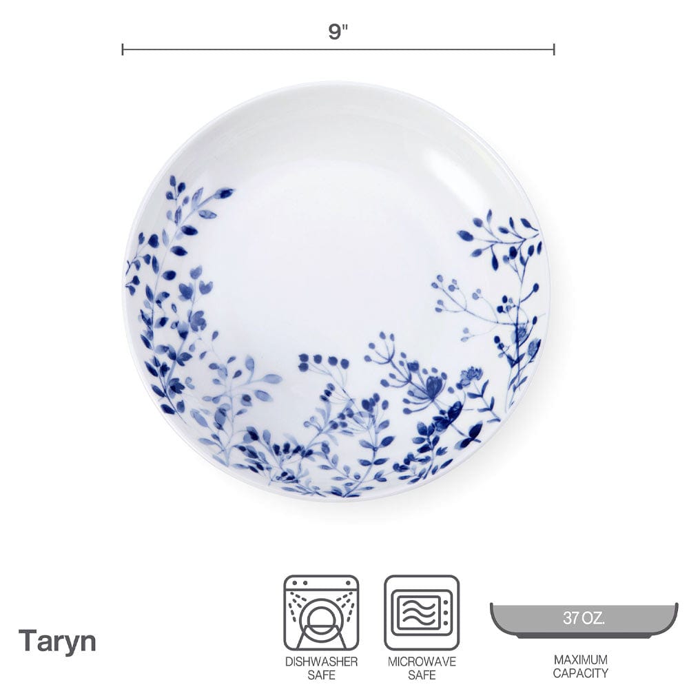 This Taryn Set of 4 Pasta Bowls feature a clean white background. decorated with a delicate blue floral pattern. will pop on your dining table and is perfect for everyday use.
