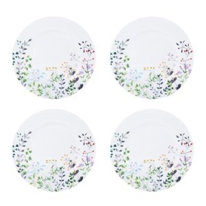 This Mikasa Tivoli Garden Set of 4 Salad Plates feature a white background. with delicate. colorful buds sprouting around the rim. and will make every meal feel like a walk through a fresh spring meadow.