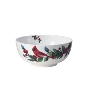 This Mikasa Winter Cardinal Set of 4 Fruit Bowls feature a beautiful watercolor poinsettia and cardinal design. Perfect for everyday use; can be dressed up or down for all your holiday gatherings.